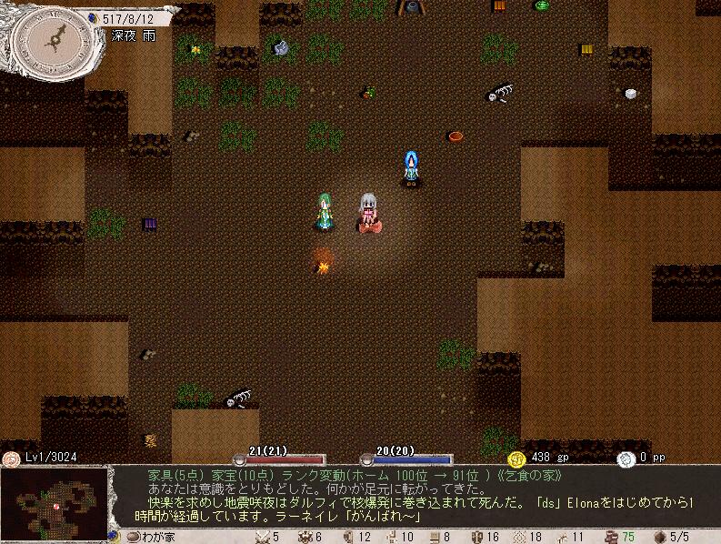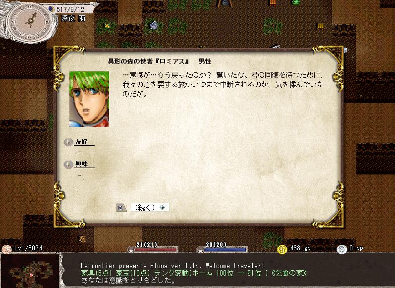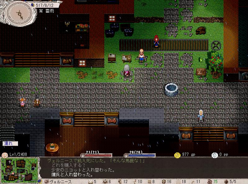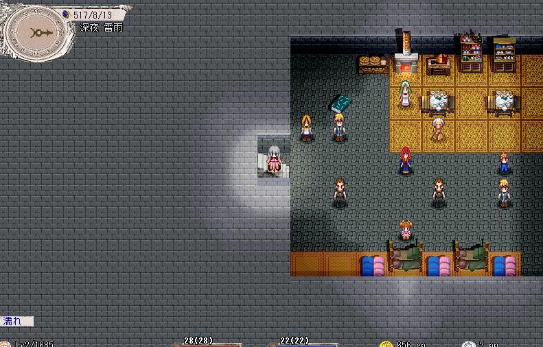 以前説明したとおり、バーテンダーに頼んで仲間を呼び戻します。呼びもどした仲間はHPが1/3ぐらいに減っている為、休憩(shift+rキー)してターンを経過させ、体力を回復しましょう。ターン経過さえすれば何でもいいので、歩き回る方がいいかもしれません。特にダンジョンだと。
